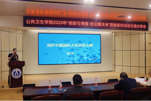 随后,廖大琪从中国国际老员工创新大赛角度,为在场同学提供了理论分析。他深入剖析了赛制的变革,从“互联网+创业”向“创新引领”的转型中提炼出备赛策略,以金奖项目“肠治久安——基层消化道早筛智能系统”为例,详细拆解了选题要点、标题设计、PPT制作、路演方法等技巧。廖老师指出,公共卫生创业创新项目应直击“三性一高七多”,同时利用AI+公卫模型来实现创新性跨界破局。
