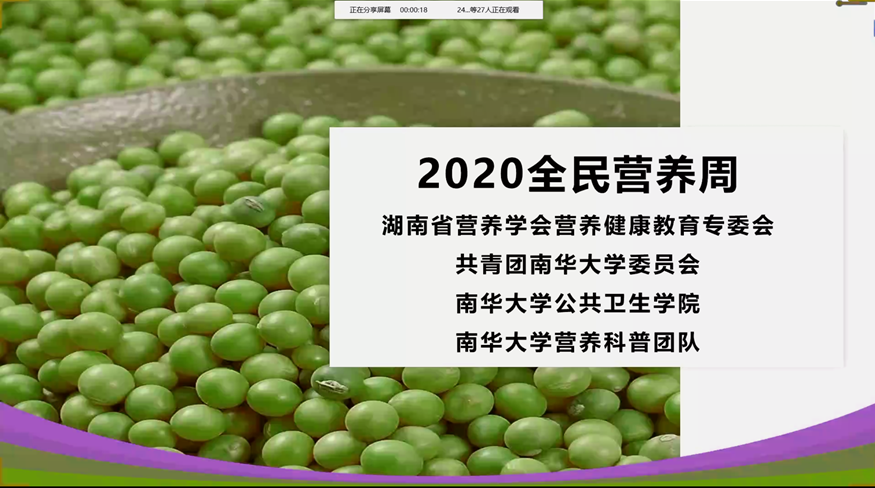 为响应2020年全民营养周活动, 5月23日晚,“合理膳食,免疫基石”主题讲座在vsport胜利因您更精彩营养科普交流群中成功举行。本次活动由湖南省营养学会营养健康教育专委会、共青团vsport胜利因您更精彩委员会、vsport、vsport胜利因您更精彩营养科普团队共同举办。线上营养科普讲座为营养周活动之一,由vsport营养科普团队成员吴瑕主讲,讲座内容紧扣2020年全民营养周主题——“合理膳食,免疫基石”,以通俗易懂的语言向大家宣传合理膳食对提高免疫力的重要性,介绍了奶类、大豆等优质蛋白来源,新冠肺炎期间各类人群的膳食建议,全民分餐制的意义与推广,倡导听众养成健康饮食习惯,提高健康素养。