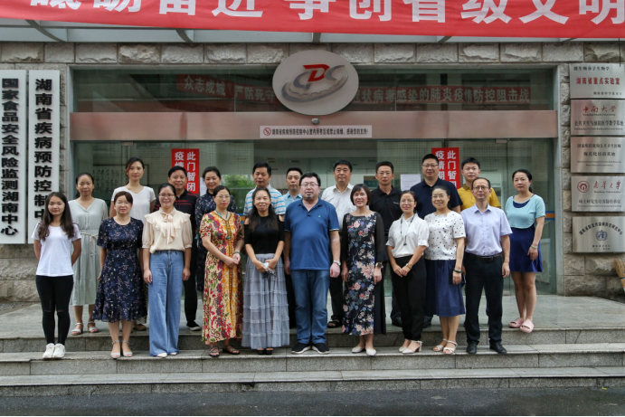 杨慧仙副经理(前排右四)一行5人与湖南省疾控中心副主任陈曦(前排右五)及基地部分培训老师合影