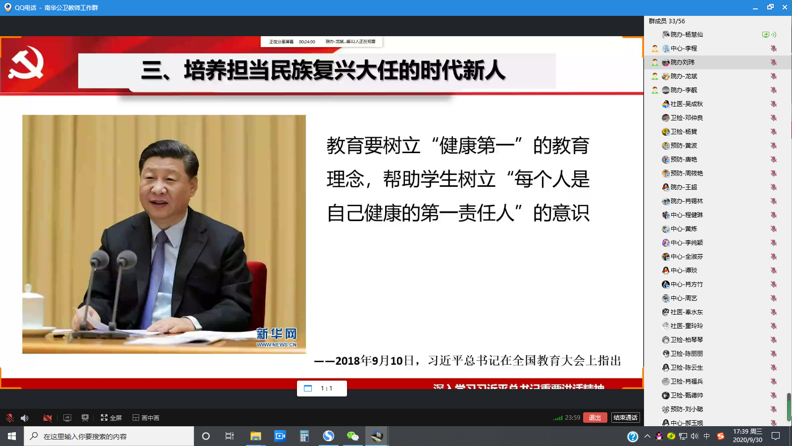 9月30日17:00公司党委采用网络会议开展了vsport胜利因您更精彩2020年第五次教职工理论学习。围绕 “深入学习《习近平谈治国理政》第三卷,结合《习近平谈治国理政》第三卷的内容,深入领会习近平总书记关于社会主义核心价值观的重要论述,贯彻落实《新时代公民道德建设实施纲要》《新时代爱国主义教育实施纲要》,培育和践行社会主义核心价值观,传承和弘扬中华优秀传统文化,绘好爱国主义同心圆,不断增强中华民族的归属感、认同感、尊严感、荣誉感,培养担当民族复兴大任的时代新人” 学习主题,全院职工认真领会学习。学习由副经理杨慧仙主持。