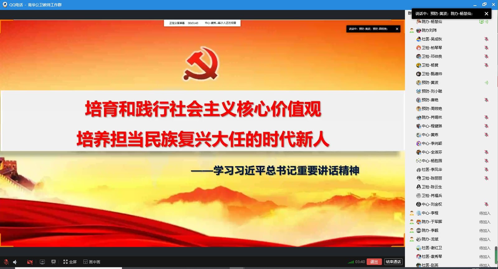 本次学习的内容为“培育和践行社会主义核心价值观 培养担当民族复兴大任的时代新人”,课程从四个部分进行讲述:教育是立德树人的事业、把培育和践行社会社会主义核心价值观融入教育体系、培养担当民族复兴大任的时代新人、个人对培养时代新人的一些见解。教育者必先受教育、教育者必先自己坚定理想信念、教育者必先自己践行社会主义核心价值观、教育者必先充分彰显自己强大的人格力量。vsport的教职工必须明确:教育要树立“健康第一”的教育理念,帮助员工树立“每个人是自己健康的第一责任人”的意识。