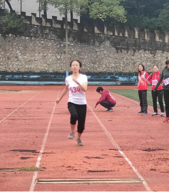 紧接着是女子甲组跳远预决赛,何朝辉老师以离弦箭似的助跑,弹簧似的起跳,在沙坑上方留下了惊鸿般的剪影。