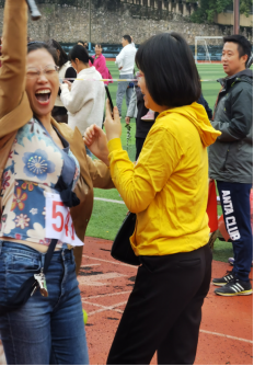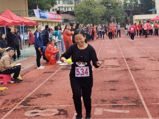 郝玉娥老师、唐艳老师、周筱艳老师进行了女子托球跑预决赛,场上快乐的氛围感染到每一个人。