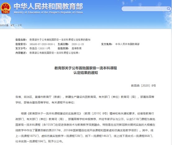 近日,教育部正式公布了首批国家级一流本科课程名单(教高函〔2020〕8号),vsport让蔚清教授课程团队的《营养与食品卫生学》成功入选首批国家级一流本科课程中的线下一流课程。