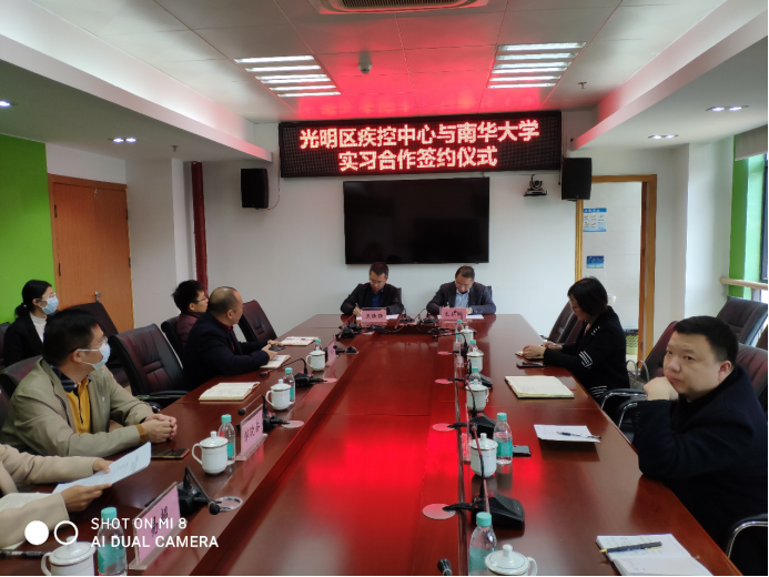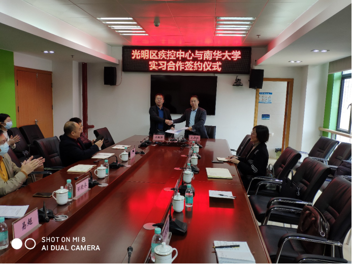 随后,龙鼎新经理一行又赶往深圳市光明区疾病预防控制中心签订教学实习协议。光明区疾控参加本次签约仪式的有中心主任王铁强、副主任邹晓春、副主任刘义、副主任易超等。本次签约仪式由易超副主任主持,双方就建立公共卫生实习教学基地,开展预防医学专业员工实习合作等方面进行了亲切友好的交流,达成了合作协议。最后由龙鼎新经理和王铁强主任分别代表单位签订了vsport胜利因您更精彩公共卫生教学实习基地协议书。