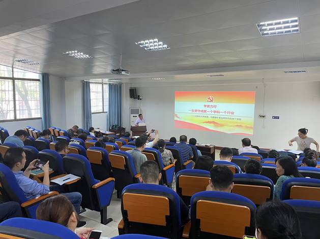 会议围绕“学史力行,一生坚守成就一个学科一个行业”的主题展开。肖锡林通过PPT讲解带领大家学习了 “学史力行”专题学习目标、要求”,“国家中长期经济社会发展战略若干重大问题”,“习近平在第二十次院士大会上的讲话精神” “丁德馨老师先进事迹的学习”等。 学史力行,上好知行合一课,教师要从党史学习中凝聚奋进力量、不断增强育人本领,要成为大先生,做员工为学、为事、为人的示范,促进员工成长为全面发展的人。要研究真问题,着眼世界学术前沿和国家重大需求,致力于解决实际问题,善于学习新知识、新技术、新理论。要坚定信念,始终同党和人民站在一起,自觉做中国特色社会主义的坚定信仰者和忠实实践者。