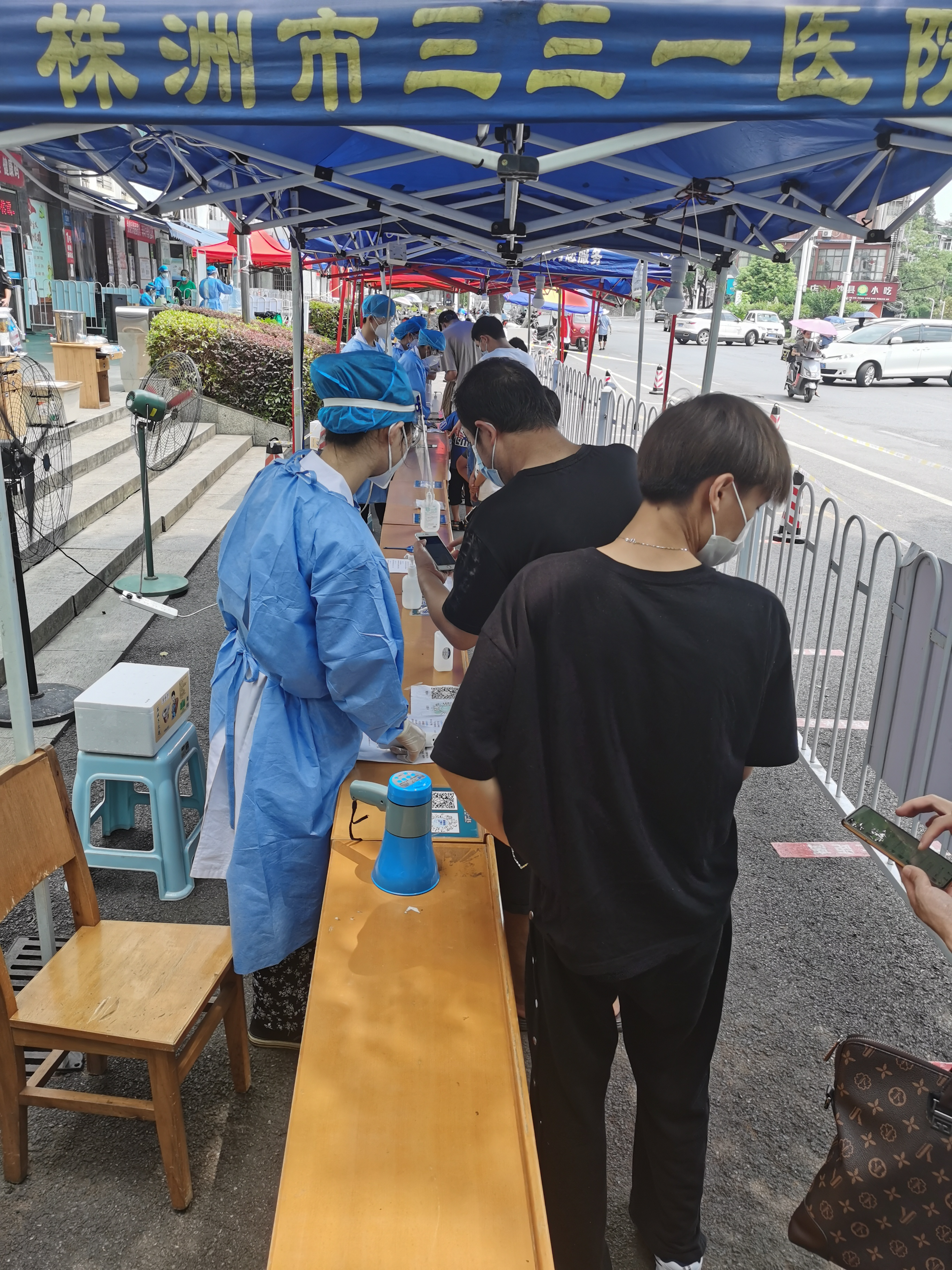 8位志愿者递交了请战书后,迅速行动,奔赴战场。8月7日-8日,他们在三三一医院进行核酸采样支援。他们主要负责维持现场秩序、为前来做核酸检测的市民提供咨询、指导缴费以及个人的流行病学调查等工作。9日,他们接到上级紧急任务后,跟随医院迅速组建的核酸检测团队去支援株洲市石峰区核酸检测采样工作。10日,他们一起到次密接触者家中对其进行核酸检测。由于受检者居住地点分散且有些地方车辆无法进入,大家只能穿着厚厚的防护服,顶着烈日,走路到各检测地进行核酸检测。8名志愿者逆行而上,用行动守护着人民,守护着株洲、湖南、中国。