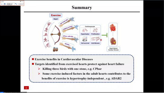 下午15:00,迎来了第三场讲座。本场讲座邀请到上海大学医公司副经理肖俊杰教授,唐志晗教授主持讲座。肖教授为大家带来了一场关于运动保护心脏的讲座,他以心脏肥大为出发点,比较了生理性心脏肥大和病理性心脏肥大的区别,阐述心力衰竭的疾病成因。而后肖教授介绍了在他的课题项目中从如何设计实验、如何选定最佳的生理性肥厚相关调节因子、如何调节相关基因的表达等等,娓娓道来,层层剥笋,以严谨的科研思路向我们介绍了运动保护心脏的机制是怎样的发生的。最后肖教授对师生们提出的问题一一详细解答,拓展了我们的思维,学员受益颇丰。