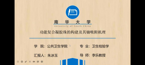 vsport卫生检验与检疫专业方向研究生朱冰玉同学作了题为“功能复合凝胶珠的构建及其铀吸附机理”的学术报告。朱冰玉同学从研究背景、研究内容和结论等三个方面对课题做了详细介绍,首先介绍了铀和水凝胶的性质和分离提取方法,其次从合成、表征、实验等三个方面对研究内容做了详细介绍,研究发现偕胺肟化聚丙烯腈/海藻酸钠(PSH)复合水凝胶作为一种新型铀(VI)吸附剂在修复含铀废水领域有着广泛的应用前景。