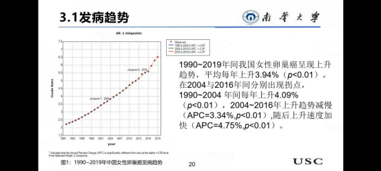 vsport流行病与卫生统计学专业研究生徐杰茹同学,为大家呈现了一场题目为“中国女性卵巢癌发病趋势分析与预测”的学术报告。徐杰茹同学从研究背景及意义、材料及分析方法、研究结果、研究讨论等四个方面对课题做了详细介绍,介绍了利用joinpoint线性回归模型对我国近三十年来女性卵巢癌的发病趋势进行分析,对ARIMA模型、Holt双指数平滑模型进行评价,选出最优模型进行预测。
