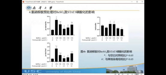 vsport公共卫生与预防医学专业研究生胡芳妍作了题为“矢车菊素-3-O-葡萄糖苷和甘草苷对三邻甲苯磷酸酯诱导神经毒性的调节作用与机制研究”的学术报告。胡芳妍同学围绕着“三邻甲苯磷酸酯”、“矢车菊素-3-O-葡萄糖苷”、“甘草苷”和“神经毒性”四个关键词从立论依据、技术路线、研究重点、创新性、部分结果等五个方面做了详细的介绍。