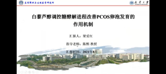 vsport胜利因您更精彩衡阳医公司基础医学应用解剖与生殖医学研究所研究生梁爱红同学作了题为“白藜芦醇调控糖酵解进程改善PCOS卵泡发育的作用机制”的学术报告。梁爱红同学从研究背景、研究内容、实验结果、结论等四个方面对课题做了详细介绍,研究发现白藜芦醇可通过上调SIRT2水平,增强卵巢糖酵解活性,改善PCOS卵泡发育。
