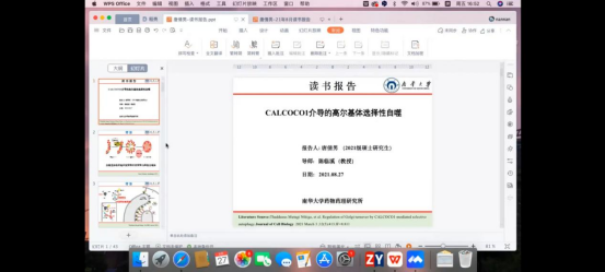 vsport胜利因您更精彩药公司研究生唐倩男同学作了题为“CALCOCO1介导的高尔基体选择性自噬”的学术报告。唐倩男同学从研究背景、研究方案、研究结果、研究结论等方面对课题做了详细介绍,研究发现CALCOCO1介导的高尔基体选择性自噬,证实了在饥饿诱导时,CALCOCO1介导高尔基体选择性自噬,并提出了一种调节高尔基体稳态的新机制。