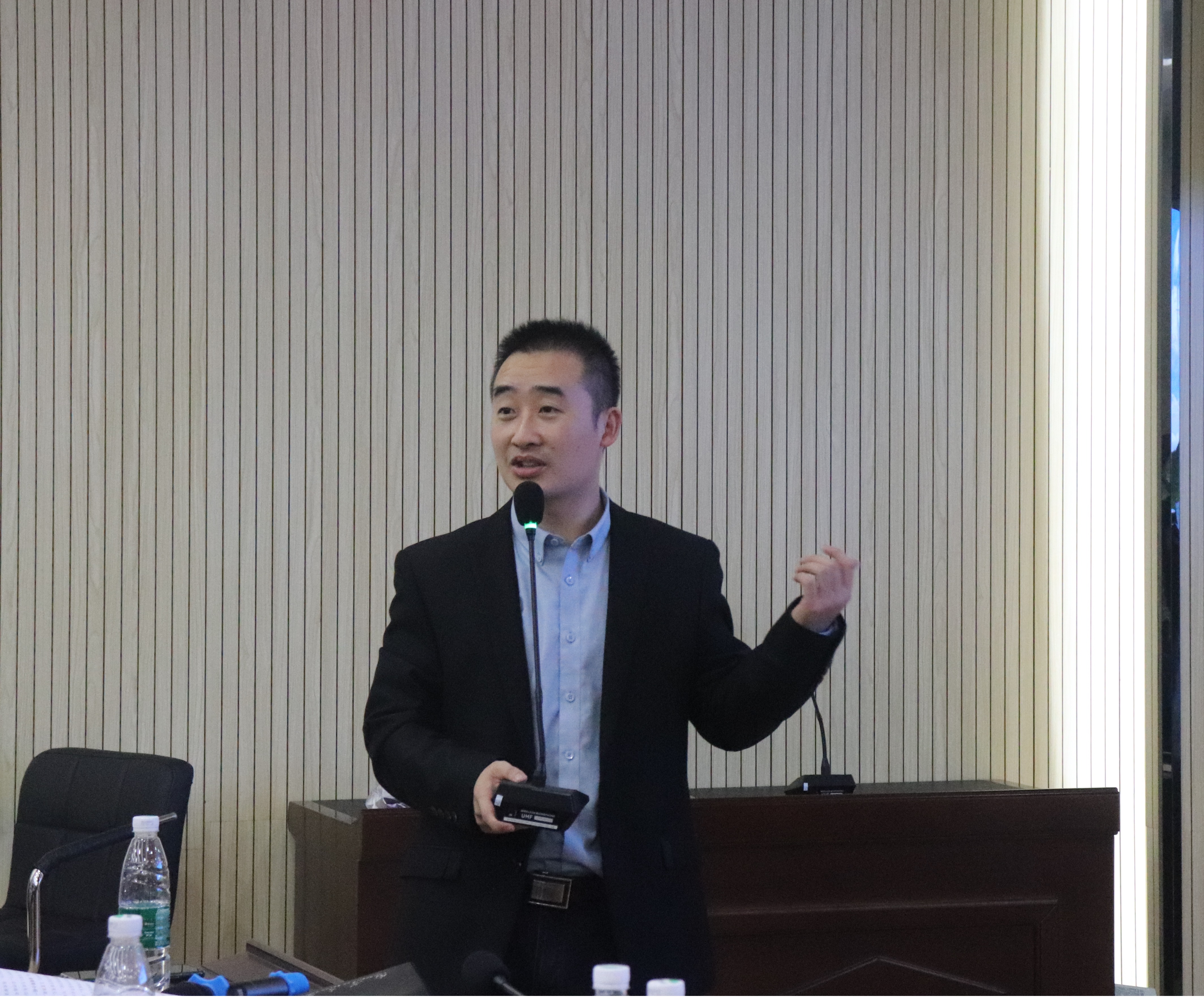 杨飞作本次报告总结。他表示,非常感谢曾教授所分享的国家自然科学基金项目申报的体会与建议,给公司师生的科研工作提供了宝贵的经验,并强调老师和同学应该学习曾教授严谨的科研态度,坚韧不拔、奋力拼搏的工作精神。
