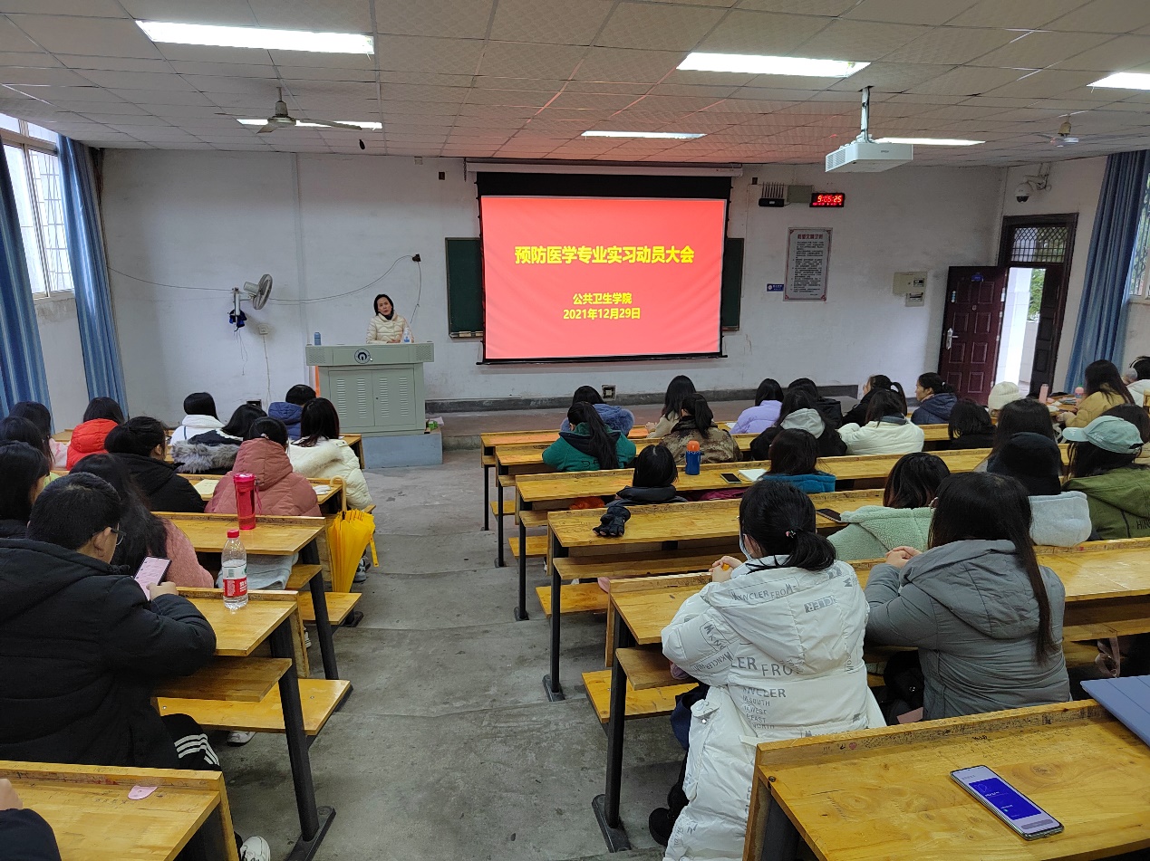 2021年12月29日上午,vsport在形态楼301教室召开了2018级预防医学专业员工实习动员大会。会议由公卫公司教学办主任于军晖主持,vsport副经理杨慧仙、预防医学系副主任周筱艳、学工办主任孙越龙、船山公司辅导员范婷出席会议。vsport和船山公司2018级预防医学专业的全体员工参加了会议。
