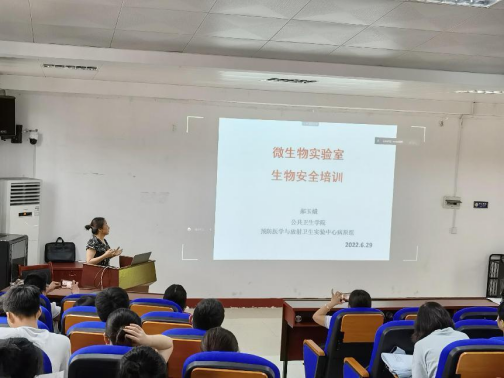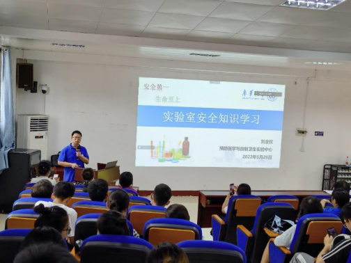 为了进一步加强暑期实验室安全管理工作,强化安全意识和责任,公司预防医学与放射卫生实验中心于2022年6月29日下午在医学楼101学术报告厅举行实验室安全教育培训,2021级研究生和部分本科生参加了本次安全教育培训。