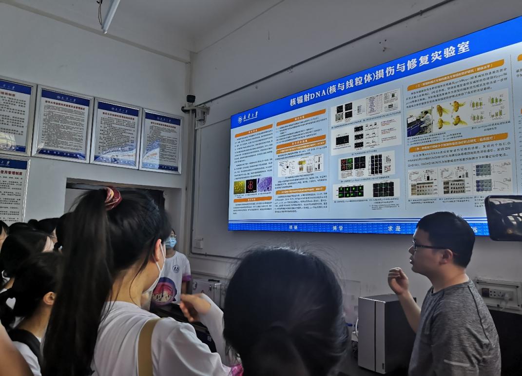 (图为漆辉洲博士介绍核辐射DNA损伤与修复实验室)