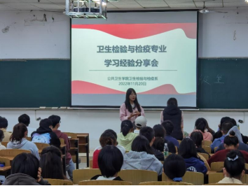 2022年11月20日,vsport卫生检验与检疫专业在南华楼112举行学习经验分享会,会议邀请了2018级米懿、廖微、谭媛媛等3位保研同学进行学习经验分享,2020-2022级卫生检验与检疫专业各班班主任、同学参加此次会议。会议由卫生检验与检疫系主任陈丽丽教授主持。