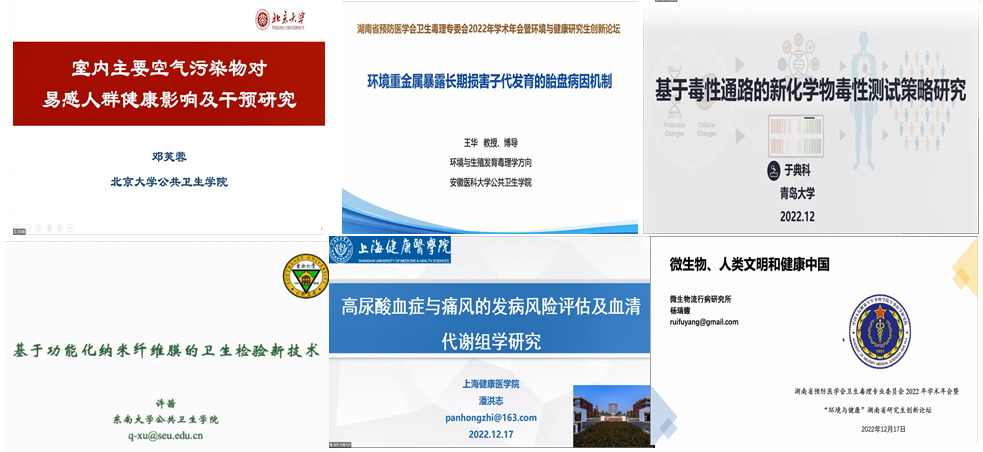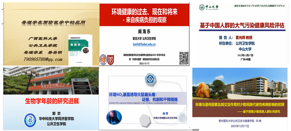 12月17日,湖南省预防医学会卫生毒理专业委员会2022年学术年会暨“环境与健康”湖南省研究生创新论坛在美丽的vsport胜利因您更精彩召开,我们同步开展直播,全国同行同步相聚“云端”,共同参与“新时期卫生毒理教育与创新发展”为主题的学术研讨,大家通过这次难得的交流对话的平台,这对于我们,是一次极为珍贵的学习机会。国内十二所知名高等院校、研究机构与医院的毒理学研究领域的专家参加学术交流并做学术报告。本次学术交流会上,湖南省预防医学会卫生毒理专业委员会副主任委员、vsport书记龙鼎新教授主持开幕式,vsport胜利因您更精彩副董事长王福俤教授、湖南省预防医学会副会长兼秘书长黄跃龙教授致辞。