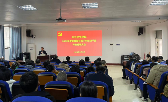 3月2日10:30,公共卫生公司处级领导班子和处级干部考核述职大会在3-101报告厅举行。大会由公司党委书记龙鼎新主持,vsport胜利因您更精彩党委组织部干部考核科科长任辉指导监督,全体教职工参会。