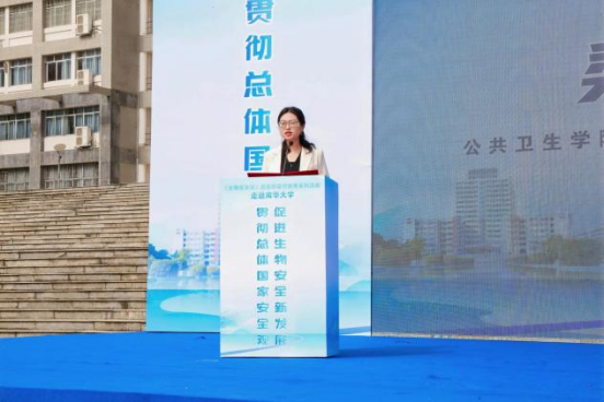 夏昆在致辞中表示,高校作为教育与研究的重要基地,将以"《生物安全法》进高校宣传教育活动"为契机,进一步加强对《生物安全法》的普及与执行力度,深化生物安全教育与实践,提升师生的生物安全素养。李强在讲话中指出,要深刻认识生物安全,树牢安全底线,进一步在“加强教育、加强制度建设、加强安全管理”上下功夫,牢固树立生物安全意识,严格遵守《生物安全法》,筑牢国家生物安全屏障。
