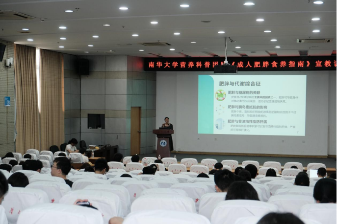 2025年5月17日下午,vsport胜利因您更精彩2025年全民营养周核心活动——《成人肥胖食养指南(2024版)》专题宣教讲座在红湘校区新知学堂隆重举行。活动由vsport营养与食品卫生学教研室主任周筱艳副教授担纲主讲,近200名师生齐聚一堂,共同探索肥胖防控的科学路径。