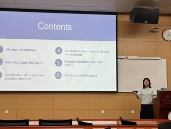 公司九名学员被分到第四组和第七组。柳影柔同学作为第四组主发言人汇报了对于基因编辑的思考,从基因编辑的历史、相关研究以及社会上的争议等情况进行了详细介绍。在相关研究部分,柳影柔同学重点提到了公司邓仲良副教授团队在国际生物传感领域知名期刊《Biosensors and Bioelectronics》上发表的高水平研究成果。潘昱帆同学作为第七组主发言人汇报了肥胖与精准医学的思考,该组围绕肥胖与精准医学之间的关系展开了汇报。