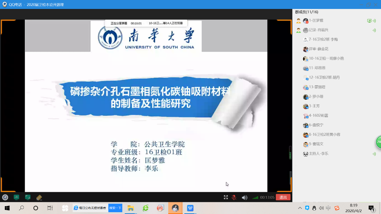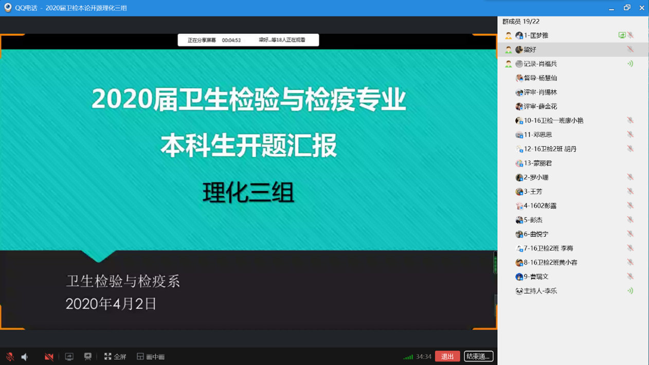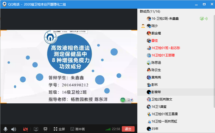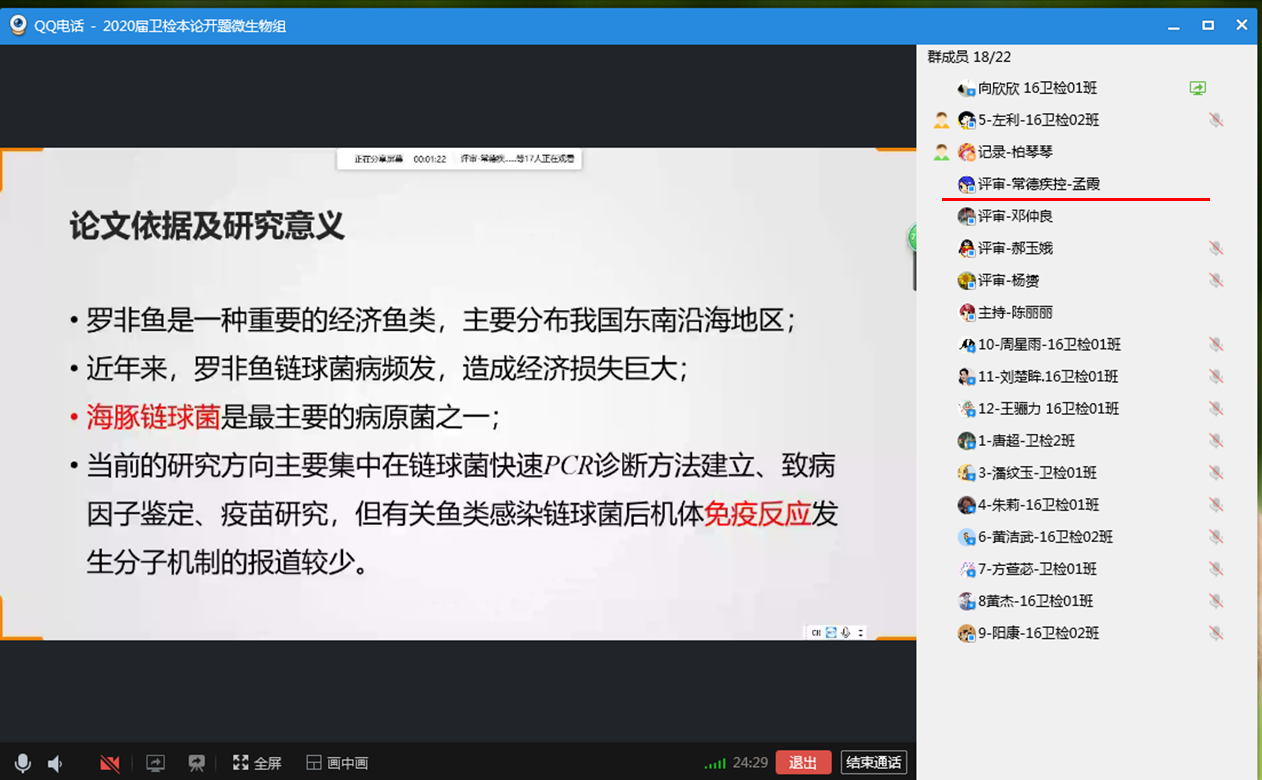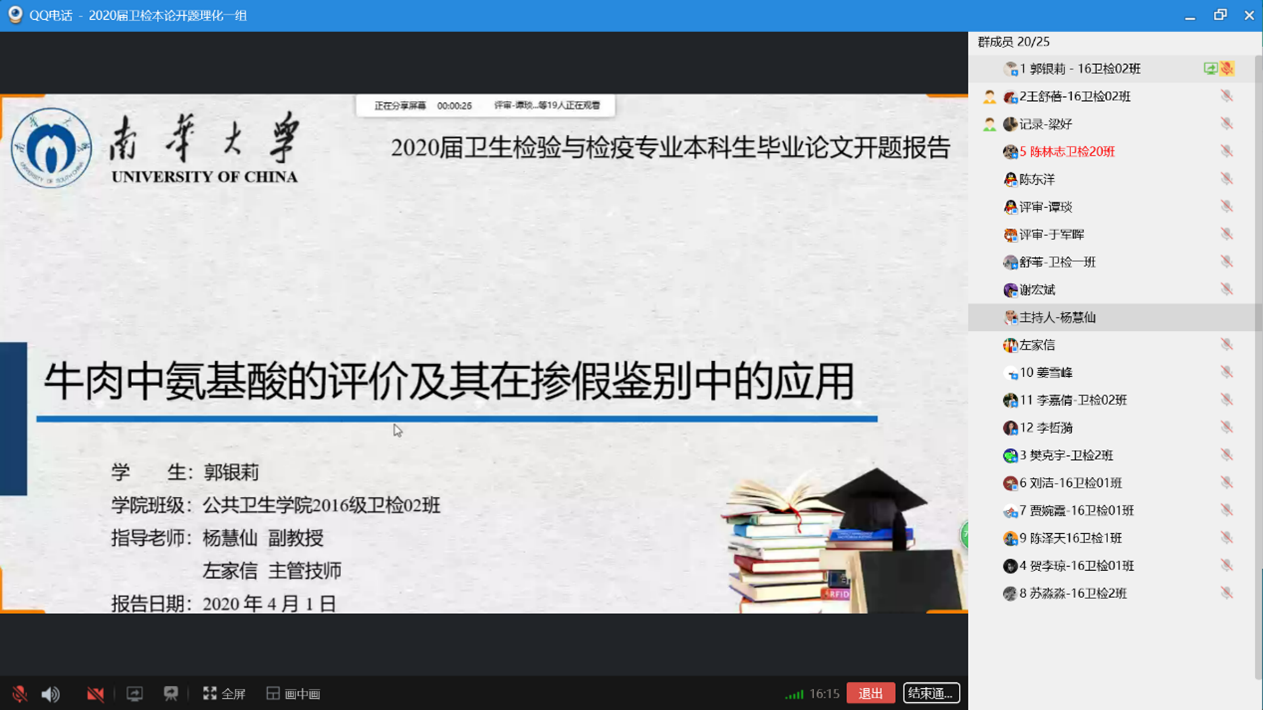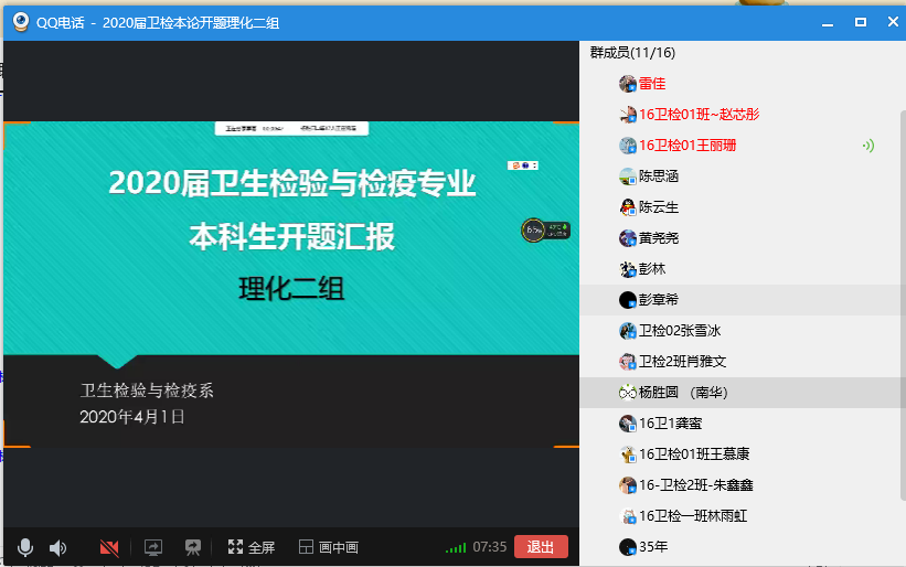 2020年4月1日和2日,vsport卫生检验与检疫系举行线上2020届卫生检验与检疫专业本科毕业论文开题,根据员工人数和研究内容分为4组,采用QQ群视频直播方式进行,理化一、二、三组和微生物组分别由杨慧仙、杨胜园、李乐和陈丽丽四位老师主持。会上,主持人首先向师生介绍评审专家并对开题汇报提出要求,汇报过程按照员工汇报开题报告的主要内容、评委评价与提问、员工回答等程序进行。本次线上开题准备充分,进展顺利。同学们汇报流畅、声音洪亮,回答问题思路清晰、有理有据。 2020届卫生检验与检疫本科毕业生共53人,除2位同学因网络问题未参加外,共完成51项开题。其中,22位同学在实习基地已完成了毕业论文实验部分和数据收集,实践课题占比43.13%。通过实践锻炼与培养员工,让同学们在理论与实践中进行提升,是我系培养专业卫检人才的目标与宗旨。 本次开题特邀请湖南省疾病预防控制中心(CDC)左家信和陈东洋、深圳市CDC王鲜、衡阳市CDC谢宏斌以及常德市CDC孟霞等五位来自vsport胜利因您更精彩校企合作人才培养基地的专家参与评审和指导。五位专家肯定了本届卫生检验与检疫专业员工各项课题的创新性和应用价值,并对员工的开题报告、PPT等提出了许多宝贵意见,老师和毕业生表示获益良多。 最后,vsport杨慧仙副经理对本次卫生检验与检疫专业本科毕业论文开题工作给予充分肯定,严把培养质量关,同时对五位专家的参会指导表示特别感谢,对各实习基地给予公司各项工作的支持表示由衷谢意。 |