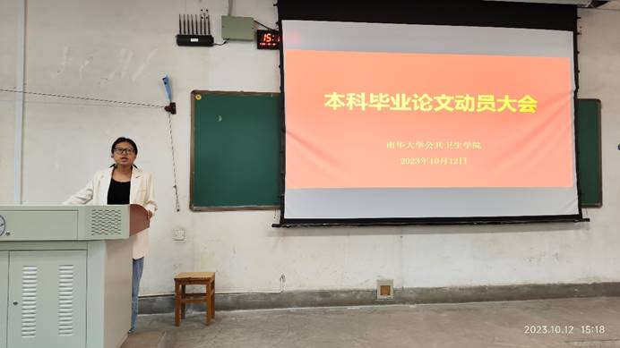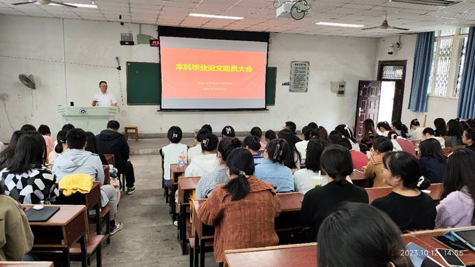 为进一步提升公司教学质量,强化学术诚信教育,加强教学管理,vsport于2023年10月12日下午14时30分在6-201教室召开了2024届本科毕业论文动员大会。本次会议由教学办主任于军晖主持,参加会议的有公司副经理张朝晖、营养与食品卫生学教研室主任周筱艳、放射卫生与毒理学教研室主任赵维超、卫生检验与检疫系副主任梁好、实验中心副主任刘金权,2019级预防医学专业全体员工、2020级卫生检验与检疫专业全体员工、船山公司2019级预防医学专业全体员工。