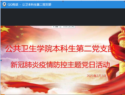 3月2日下午,vsport本科生第二党支部通过QQ群和网络视频举行了关于“新冠肺炎疫情防控”专题的主题党日活动。会议由支部副书记颜鸣雁主持,支部全体党员参加了活动。