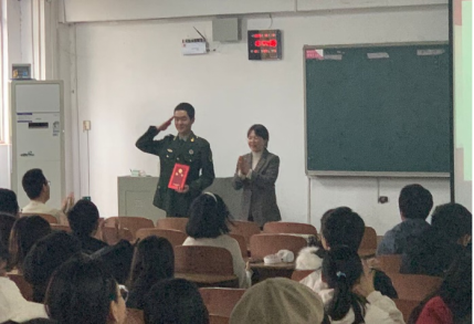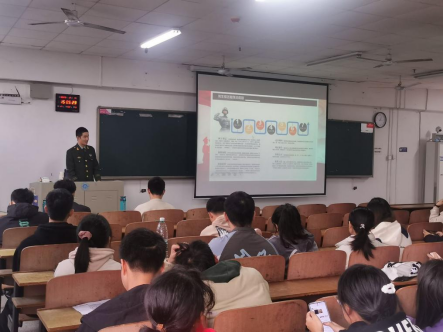 本次活动特邀退役归来的原20预防02班谢博宇同学主讲。英姿飒爽的谢博宇身着军装,站在讲台上从容自若,他面带微笑,饱含激情地讲述了自己入伍的切身经历和深刻感悟,并详细介绍了老员工入伍的优惠政策和报名流程,为在座的同学们开展了一场别开生面的征兵宣讲。
