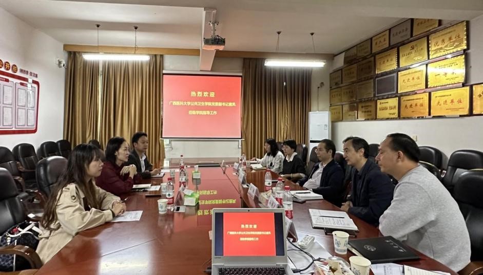 为加强新时代公共卫生人才培养交流,促进员工工作高质量发展。10月26日上午,广西医科大学公司党委副书记唐凤一行来公司访问交流。交流会于公司行政楼三楼会议室举行,vsport胜利因您更精彩公司党委书记龙鼎新、公司党委副书记王超出席会议。交流会由王超主持,全体辅导员参加。