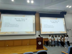 我院11名学员分别被分到第二组、第五组。管颖同学作为第二组主发言人汇报了对于中药与营养主题相关思考,从中医营养学、营养相关疾病情况、中药药食疗法和在疾病上的具体发展、药食同源角度进行了介绍。李佳凝同学作为第五组主发言人汇报了对于中医药资源助力构建人类卫生健康共同体的思考,该组从人类卫生健康共同体的定义、中医药资源和两者之间的关系以及提倡发展方面进行了汇报。