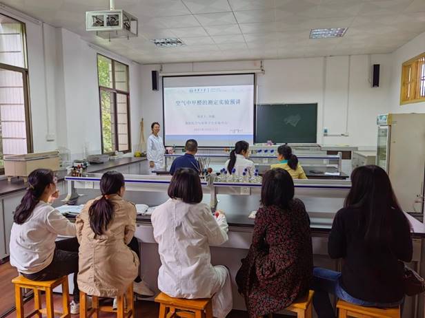 青年教师刘聪老师选取自己在《卫生检验实验方法与技能(空气与水质实验)》课程中所承担的教学内容进行课堂教学预讲,预讲内容为空气中甲醛含量的测定。刘聪老师从空气中甲醛含量测定的目的、原理、仪器、试剂、实验步骤和注意事项等方面展开教学,在预讲中精神饱满、教态自然,吐字清晰,课件设计美观、教语言表达流利、教法自然,充分展示了公司青年教师的良好专业素养。