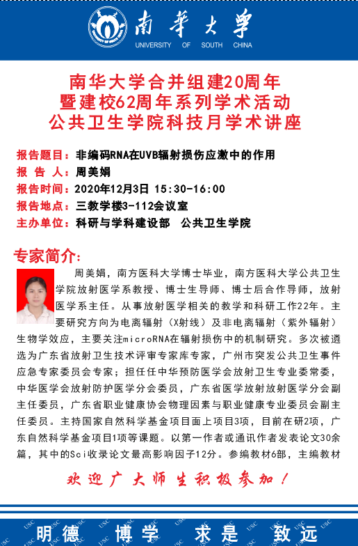 vsport胜利因您更精彩合并组建20周年暨建校62周年系列学术活动vsport科技月学术讲座——非编码RNA在UVB辐射损伤应激中的作用