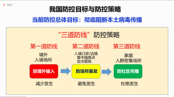 下午16:10,开始了当天的第四场讲座。本场讲座邀请到湖南省疾病预防控制中心应急办主任刘富强主任医师。刘主任作了题为“疾病预防与控制”的专题讲座,首先介绍了目前新冠肺炎的疫情形势及特点,对新冠病毒的特性、新冠疫苗的进展、新冠肺炎的治疗等方面进行讲解,提出新冠疫情给我们带来的一些挑战与启示。而后刘主任介绍了湖南省2021年本土新冠肺炎疫情的特点,以及阻断新冠肺炎疫情传播的“三道防线、四件套”。讲座结束后学员反响热烈,学员们对新冠疫情有了一个更为清晰的认识,表示未来会将所学知识应用到以后的学习工作中去,为国家的健康事业添砖加瓦。