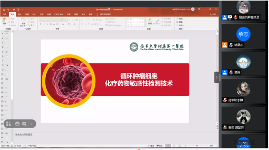下午16:30,开始了当天的第四场讲座。本场讲座邀请到vsport胜利因您更精彩附属第一医院药学部主任阳波教授,易岚教授主持讲座。阳教授作了题为“肿瘤细胞化疗药物敏感性检测技术”的专题讲座。阳教授首先比较了肿瘤在世界范围内的患病现状,随后介绍了化疗药物治疗方案及两大障碍,CTC的应用、需攻克的两大难点及其发展史的重要事件。讲座结束后学员反响热烈,阳教授针对学员的提问一一解答,使师生收益颇丰。