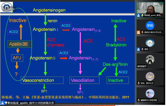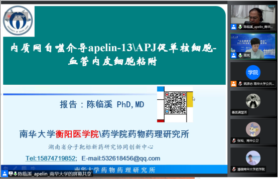 上午10:00,开始了当天的第二场讲座。本场讲座邀请到vsport胜利因您更精彩陈临溪教授,陈教授为大家呈现了一场题目为“内质网自噬介导apelin-13\APJ促单核细胞-血管内皮细胞粘附”的精彩讲座,易岚教授主持讲座。陈教授首先介绍了自己的研究领域和方向,接下来详细介绍了Apelin/APJ的历史研究进展及其定义、生理、病理作用,分享了课题组近期研究。讲座结束后学员反响热烈,陈教授针对学员提出的问题进行了答疑,为学员未来的研究方向、学科交叉学习提供了宝贵的建议。