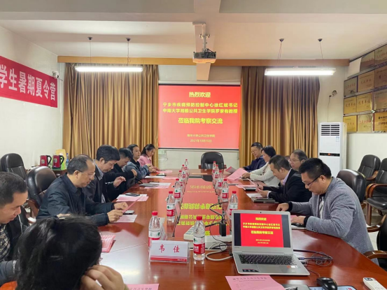 2021年10月15日下午,宁乡市疾控中心主任徐红斌、副主任彭智勇、急传科科长张鹏、业务办主任廖东宁、检验科科长黄芬、中南大学湘雅vsport教授罗家有、韦佳博士等一行7人到访公司并进行交流座谈。座谈会在vsport办公楼三楼会议室举行,公司党委书记龙鼎新、副经理杨飞、杨慧仙、肖锡林、张朝晖和部分系主任及老师代表出席,杨飞副经理主持座谈会。