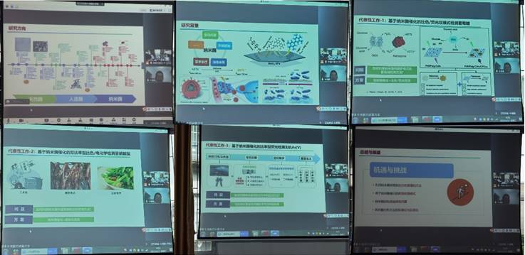 会议伊始,vsport胜利因您更精彩青年优秀人才牛湘衡教授线上做了题为“基于纳米酶催化的分析方法开发与应用”的报告。牛教授从纳米酶的发展历程出发,引出了其在生化传感、环境监测和食品监测等的应用前景,接着详细介绍了课题组近年来在纳米酶传感领域的研究思路和取得的成果,总结了纳米酶传感领域面临的机遇与挑战。报告内容非常充实,老师们讨论热烈,呈现了一场精彩的学术盛宴。