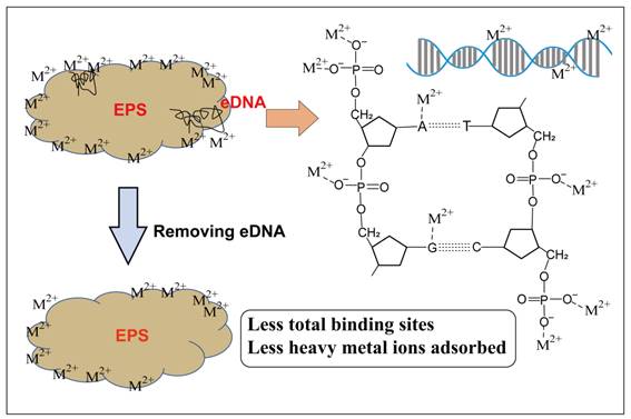 图2. 胞外DNA在重金属吸附过程中的作用机制图。
