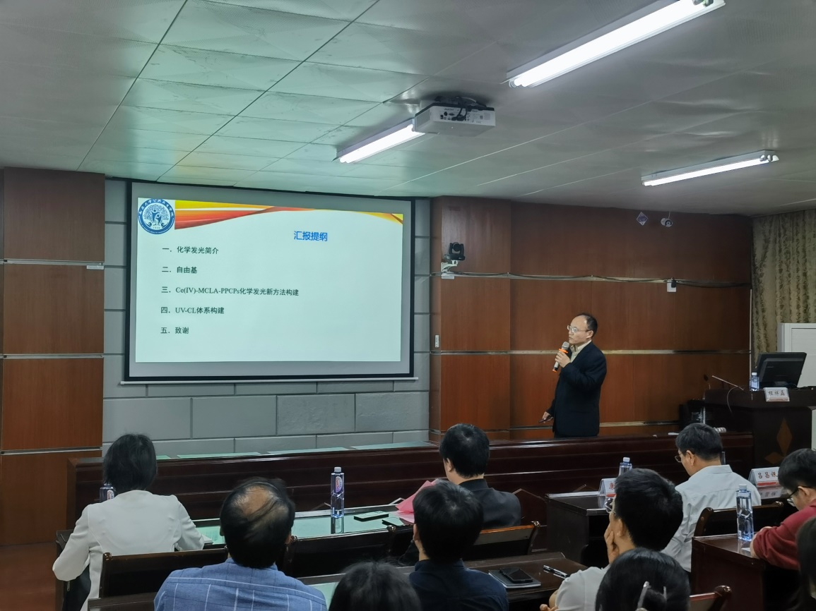 会上,李乐教授首先介绍了本次学术报告会的会议议程,并简要介绍了程祥磊教授的基本情况。程教授以“自由基靶向的化学发光机理及其在多种污染物分析新方法探究”为主题向南华师生讲述了其近期的主要研究工作及重大发现。程教授首先以生动有趣的方式给大家讲解了化学发光机理,再针对公共卫生问题开展科学研究的讨论。程教授的研究方向紧紧围绕本学科中的重点问题,使大家受益匪浅。