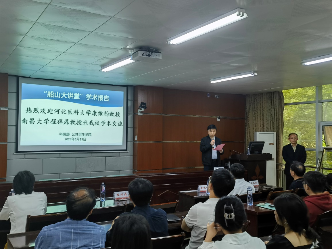 接下来,李乐教授介绍了康维钧教授的基本情况。康教授以“我国卫生检验与检疫团队建设与预防医学”为主题介绍了卫检学科的发展和卫检专业的由来以及其在医学领域中的重要位置。康教授从典藏古籍到学科先辈,对卫检学科的发展娓娓道来,老师和同学们聆听入神,感慨学科发展之快与先辈的付出。康教授作为教育部高等公司医学技术类专业教学指导委员会委员,明确指出了卫检学科及专业建设所存在的问题,强调了教师队伍建设在其中的重要性,呼吁大家应该重视团队的引进和团队的培养。同时,目前还存在专业与学科代码不对应、研招考试科目不公平影响本科生培养质量等问题,仍需大家共同努力,为卫检学科发展做出应有贡献。