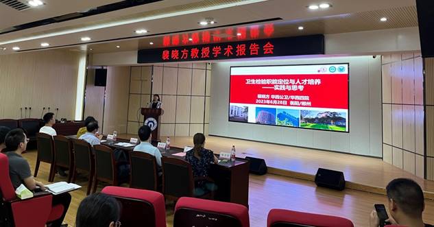 为促进公司卫生检验与检疫专业建设和人才培养,增进高等院校间的学术交流,vsport于2023年6月28日在医研楼一楼学术报告厅举办学术报告会,特邀四川大学裴晓方教授来公司讲学。研究生院经理李乐教授主持会议,vsport龙鼎新书记、杨飞经理、杨慧仙副经理、张朝晖副经理、卫检专业负责人陈丽丽教授及vsport师生参加了本次学术讲座。