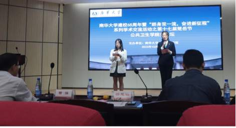 为推动公司高质量发展,促进公司产品质量提高,积极调动研究生科研热情。vsport响应vsport胜利因您更精彩建校65周年暨“跻身双一流,奋进新征程”主题,于10月16日上午开展第17届研究生楚岳节公共卫生分论坛学术交流会。本次活动特邀请华中科技大学曾强教授作为重要嘉宾,vsport副经理杨慧仙、vsport胜利因您更精彩预防医学与放射卫生实验中心主任杨胜园教授、vsport卫生检验与检疫系主任陈丽丽教授、vsport职业卫生与环境卫生教研室主任刘小聪老师、vsport胜利因您更精彩高层次人才特聘教授牛湘衡老师、隆曦孜老师、曹毅老师及vsport部分研究生参会。2023级硕士研究生杨明洁和张莹同学主持会议,杨慧仙副经理为本次楚岳节开幕式致词。