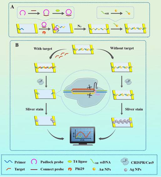 图1 基于RCA扩增辅助的“银链”电极和CRISPR/Cas9的传感策略