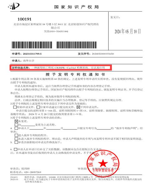 本研究工作得到了湖南自然科学基金、湖南省教育厅重点项目、湖南省卫健委重点项目支持,此外这项原创性成果获得国家发明专利快速授权,并获得第一届湖南省研究生医学创新大赛三等奖和2022年衡阳医公司学术墙报日十佳学术新人奖。该项成果的顺利完成,得益于附属南华医院何军主任技师的紧密合作(已发表中科院1区IF=12.6分1篇,2区IF=6分1篇,1篇待发),为该项研究提供了临床样品、资金和场地;得益于基础和临床医院的创新人才模式(校内和校外导师联合培养),培养了多名优秀研究生。