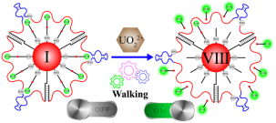 重金属是危害环境质量和公共卫生常见污染源,其中包括铀、铯、锶等。常规检测方法需要依赖大型仪器,步骤繁琐,过程复杂,难以实现污染物的简单快速、高灵敏检测。研究团队结合脱氧核酶(DNAzyme)驱动的DNA walker信号扩增技术,构建了铀酰离子生物传感体系。以重金属铀酰离子为检测目标物,结合Y型滚环介导的多重DNA walker,构建了灵敏度达到pM的荧光传感体系,实现了铀酰离子的高灵敏检测。该重金属高灵敏检测方法无需蛋白酶的参与,能有效减低检测成本。相关成果以“An enzyme-free fluorescence biosensor for UO22+ detection using Y-shaped wheel-mediated triple walking as a signal amplifier”为题发表在学术期刊Chemical Communications(Nature Index)上。vsport23级硕士研究生曾滢为第一作者,潘家峰和杨飞为共同通讯作者。相关技术已申请中国发明专利。