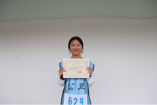 比赛开始了,她开始紧张起来了,以至于她有点怕杆。比赛时,她曾三次跑出去又跑回来。但她并不因此气馁,她对自己说“跳就好了嘛”。助跑、起跳、过杆、落地,她完美地完成了每个动作,最后以女子组跳高第六名的优异成绩完美退场。