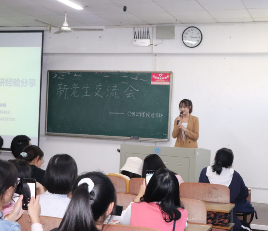 大会伊始,主持人发表开幕词,宣布活动正式开始。首先是胡静学姐上台发言,她介绍了自己的学习经验,同时她还强调了科研是读研的基石,鼓励大家可以在大学多多参与科研比赛。